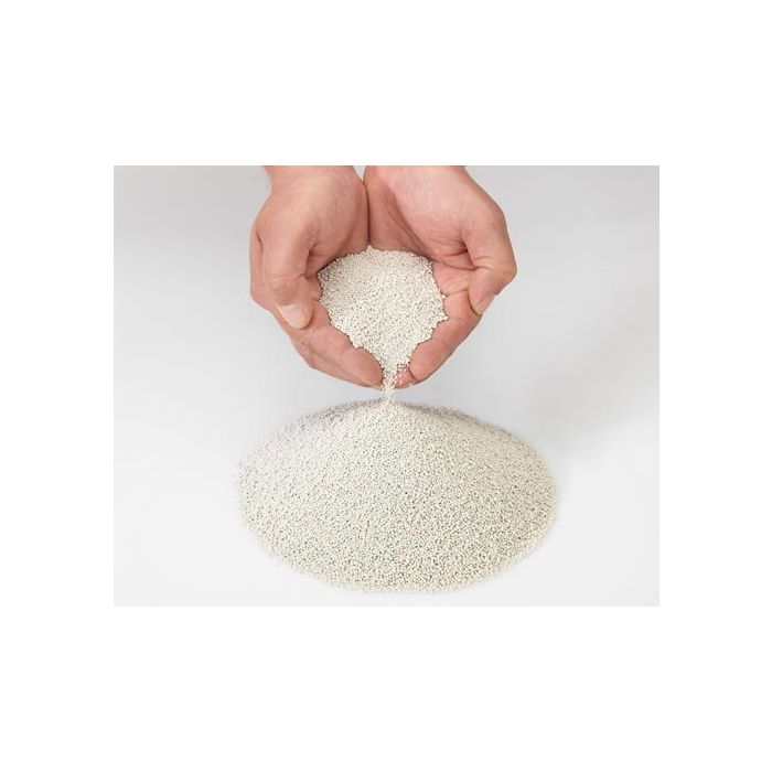 Die kleinen, leichten Kugeln bestehen aus geschäumtem Recyclingglas. Sie weisen im Inneren winzige Poren auf, die eine geschlossene Zellstruktur bilden. Das Löschgranulat ist 100% mineralisch und daher nicht brennbar.