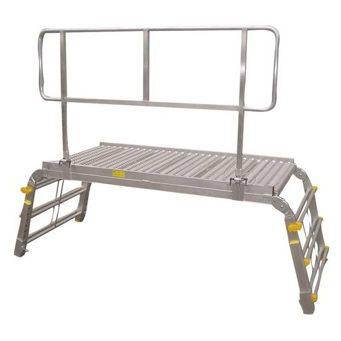 Die Aluminiumplattform erfüllt oder übertrifft die Anforderungen der Norm in allen Punkten und das bei sehr kompakten Packmaßen und einem geringen Gewicht. Die Plattform lässt sich dank stabiler Gelenke innerhalb von Sekunden auf- und abbauen. Sie ist in der Höhe verstellbar, so dass zusätzlich das Niveau an jedem Fuß einzeln ausgeglichen werden kann. Das Geländer ist mit zwei Handgriffen abklappbar. Voraussetzungen, die diese Plattform zur ersten Wahl bei vielen Einsätzen macht.