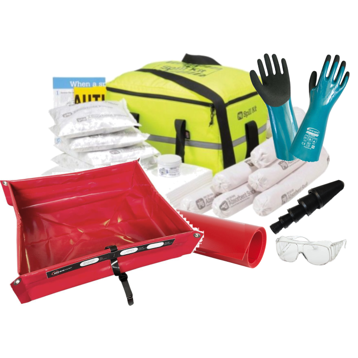 Kit de secours complet pour absorber jusqu’à 51,3 litres d’huile, d’essence et d’autres liquides à base d’huile.